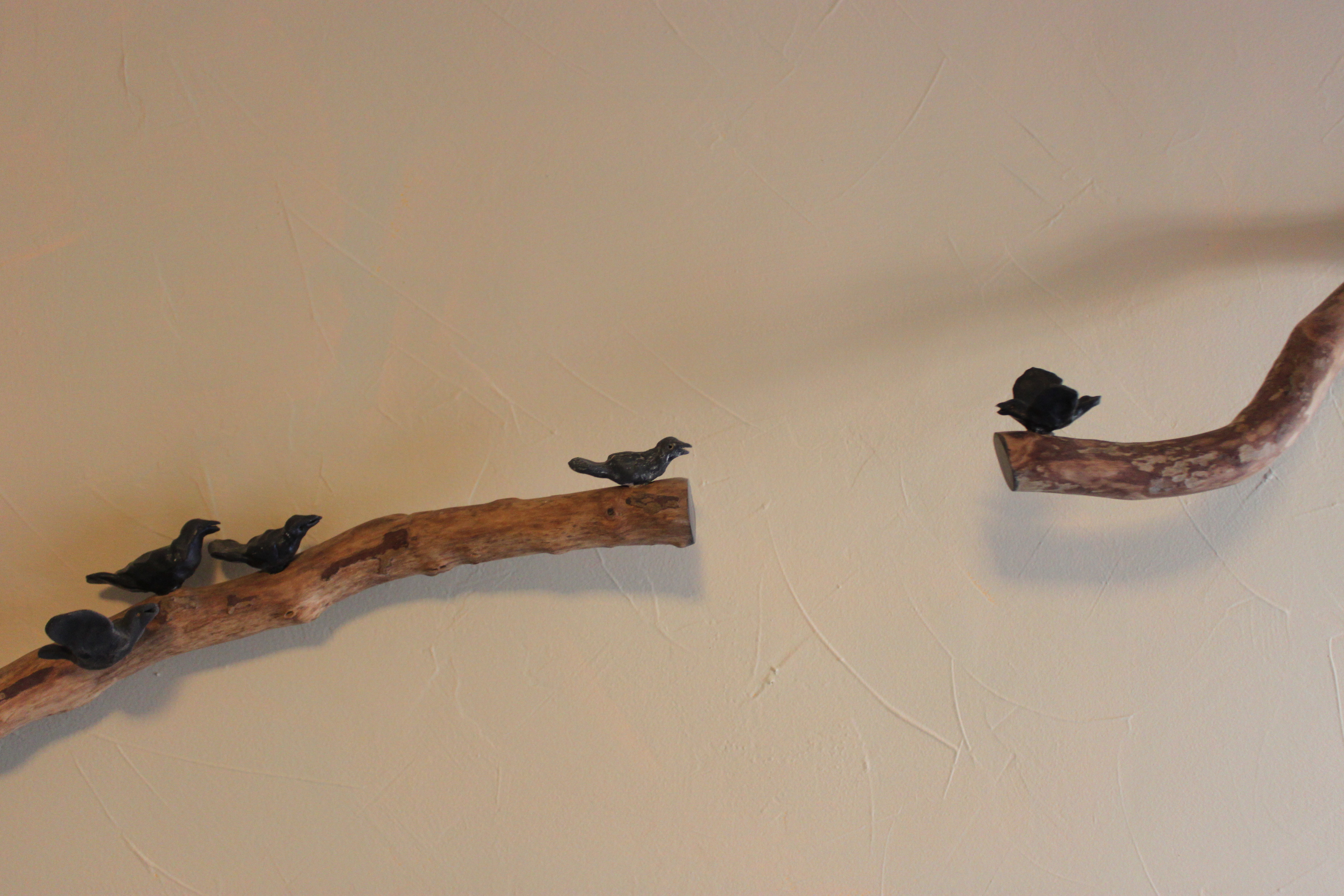 [4] From my personal collection. Birds on a Branch (2012) is a sculpture about six feet long. The branch is wood and the birds are cast bronze.