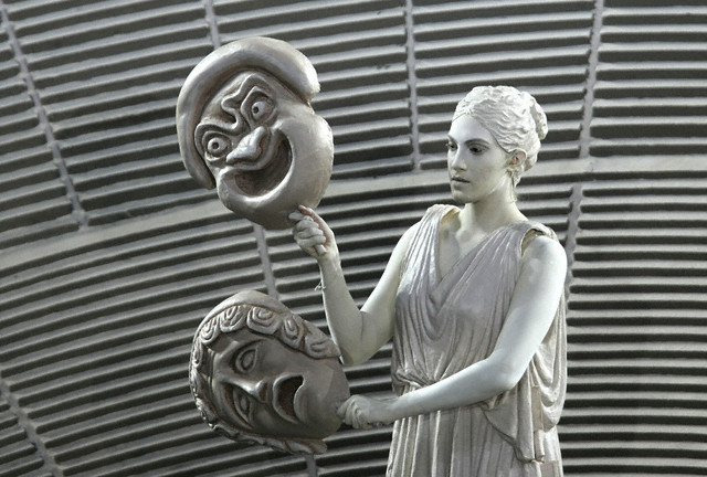 13 Aug 2004, Athens, Greece — A performer holds masks which represent classic theatre of ancient Greece during the opening ceremony of the Athens 2004 Olympic Games August 13, 2004. A spectacular opening ceremony launched the Athens Olympics on Friday, lifting spirits in the Games’ ancient birthplace after the host nation was rocked by a drugs drama involving its two top sprinters. — Image by © Wolfgang Rattay/Reuters/Corbis