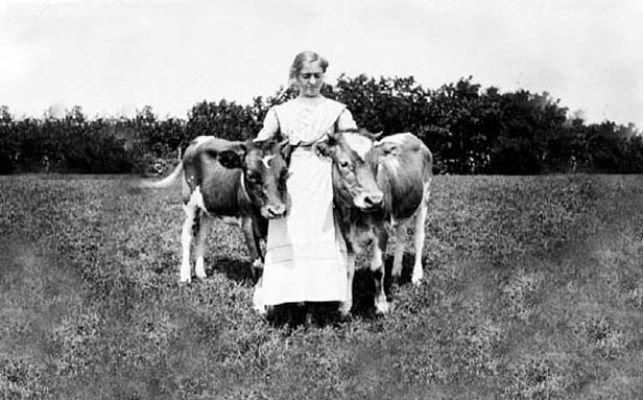 pioneer woman, two cows